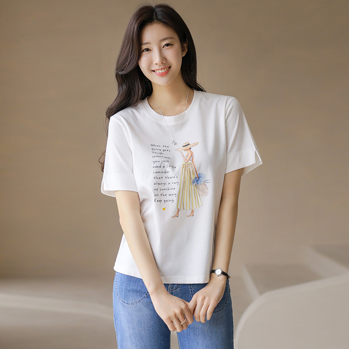 [루이스엔젤] 우먼 레터링 소매 트임 스판 라운드 티셔츠