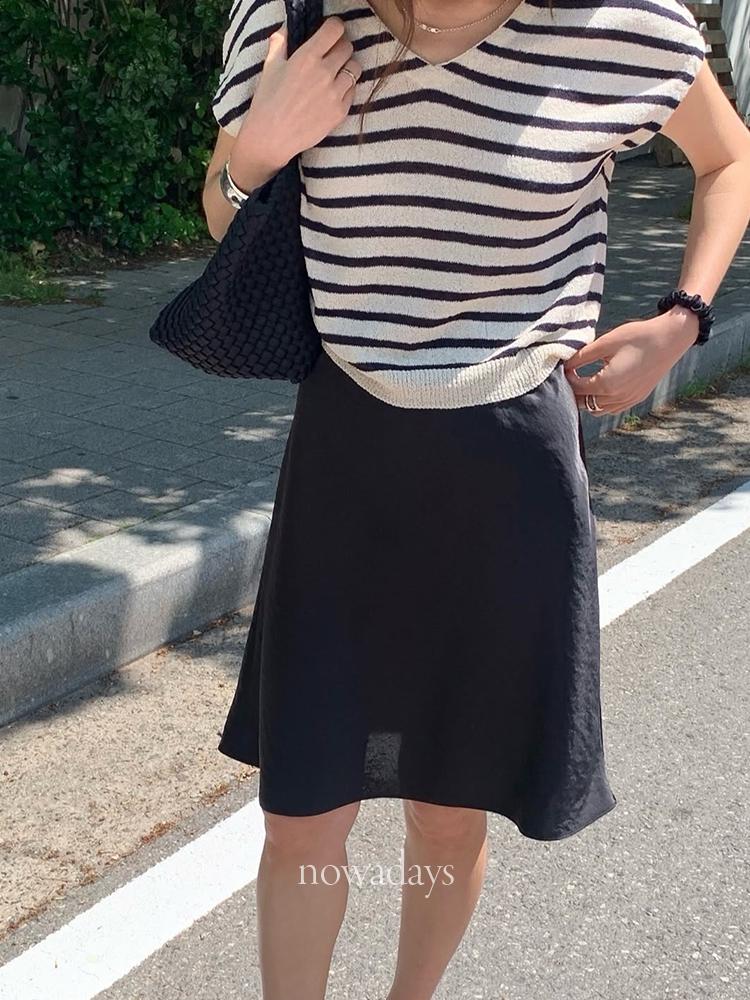 BR 브런치 마들렌 스커트 썸머 밴딩 새틴 A라인 플레어 미디 치마