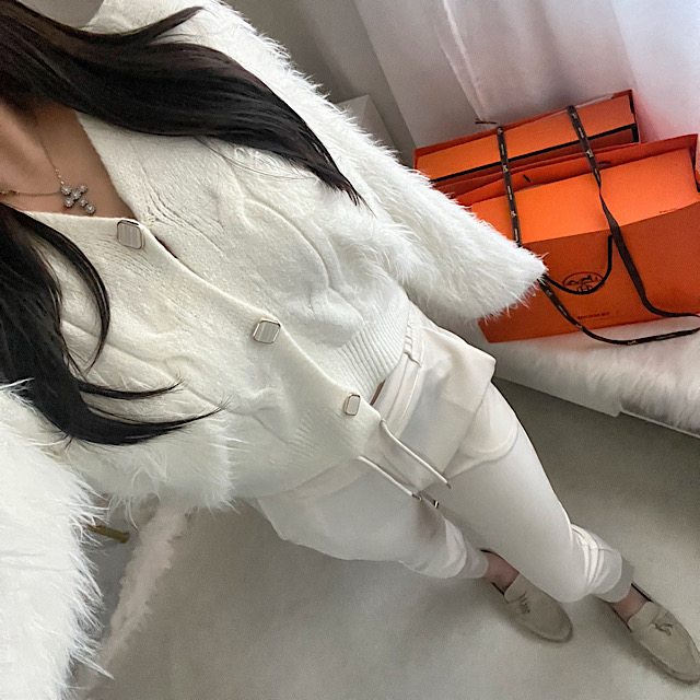 수입 대리석 버튼 헤어리 브이넥 오버핏 앙고라 퍼 루즈핏 털 가디건 (털날림X)