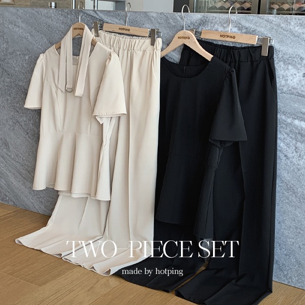 [투피스💗/하객룩추천][MADE] 블론즈 라운드넥 페플럼 블라우스+밴딩 세미와이드슬랙스set (벨트세트) (44~99) (빅사이즈투피스세트-밴딩와이드팬츠-벨트세트-와이드슬랙스-루즈핏-체형커버-군살커버-하객룩-블라우스)