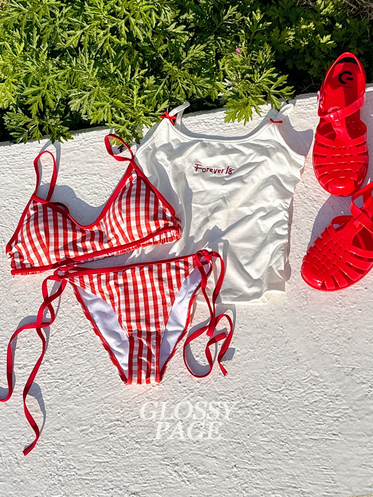 [당일배송] 포에버 셋업 체크 비키니 / 나시 세트 태닝