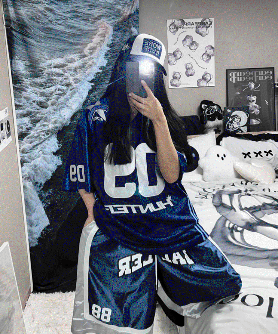 [통기성좋은/축제] 헌터 매쉬 반팔 - 시원한 여름신상 남녀공용 유니섹스 빅사이즈 오버핏 블록코어 스트릿 살안타템 한여름 매시 흠뻑쇼코디 워터밤 럭비티 유니폼 댄스 무대의상