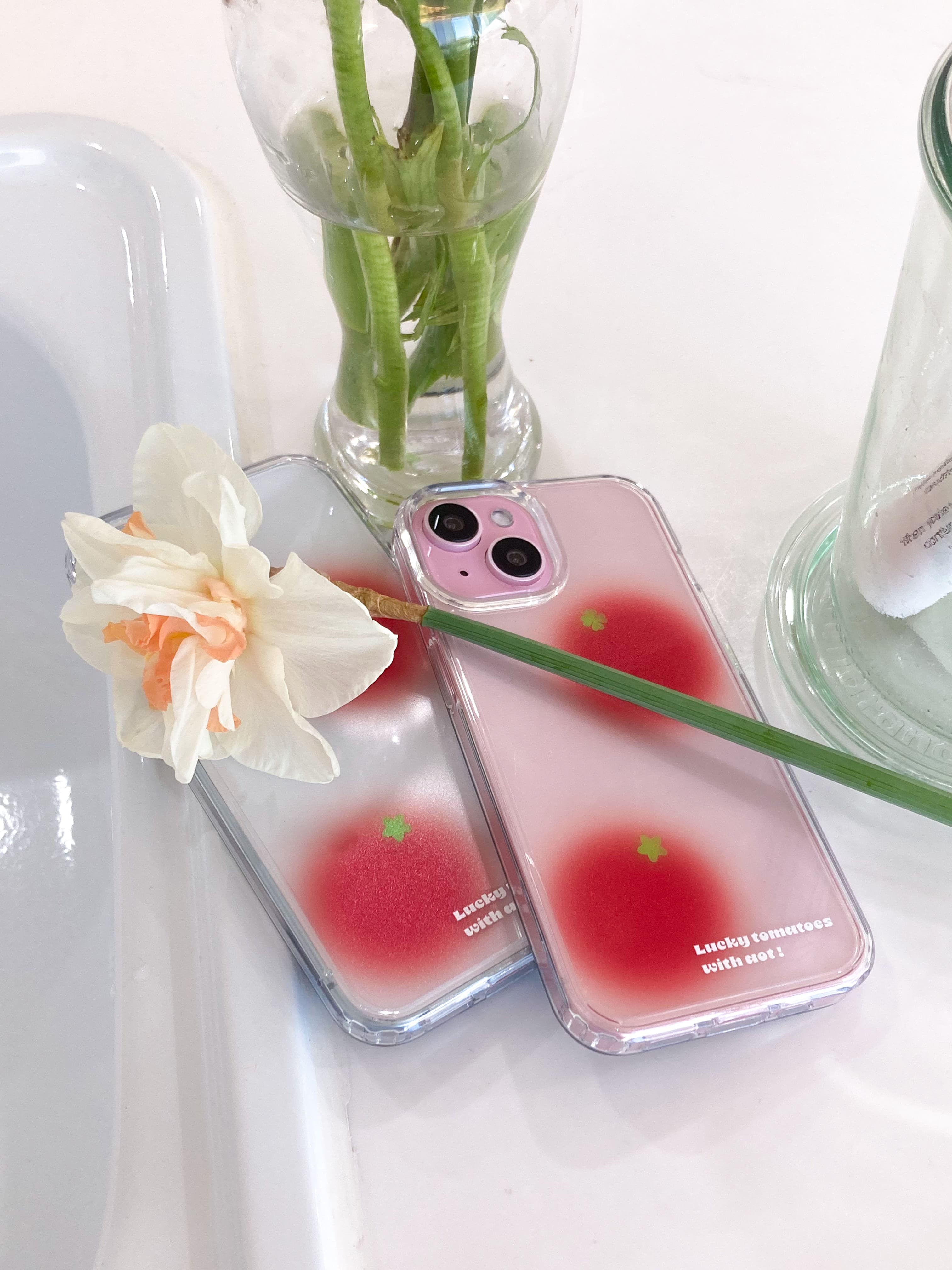 (자체제작💗키링set) 행운 토마토 케이스! 아이폰 케이스 갤럭시 케이스 투명 젤하드 폰케이스