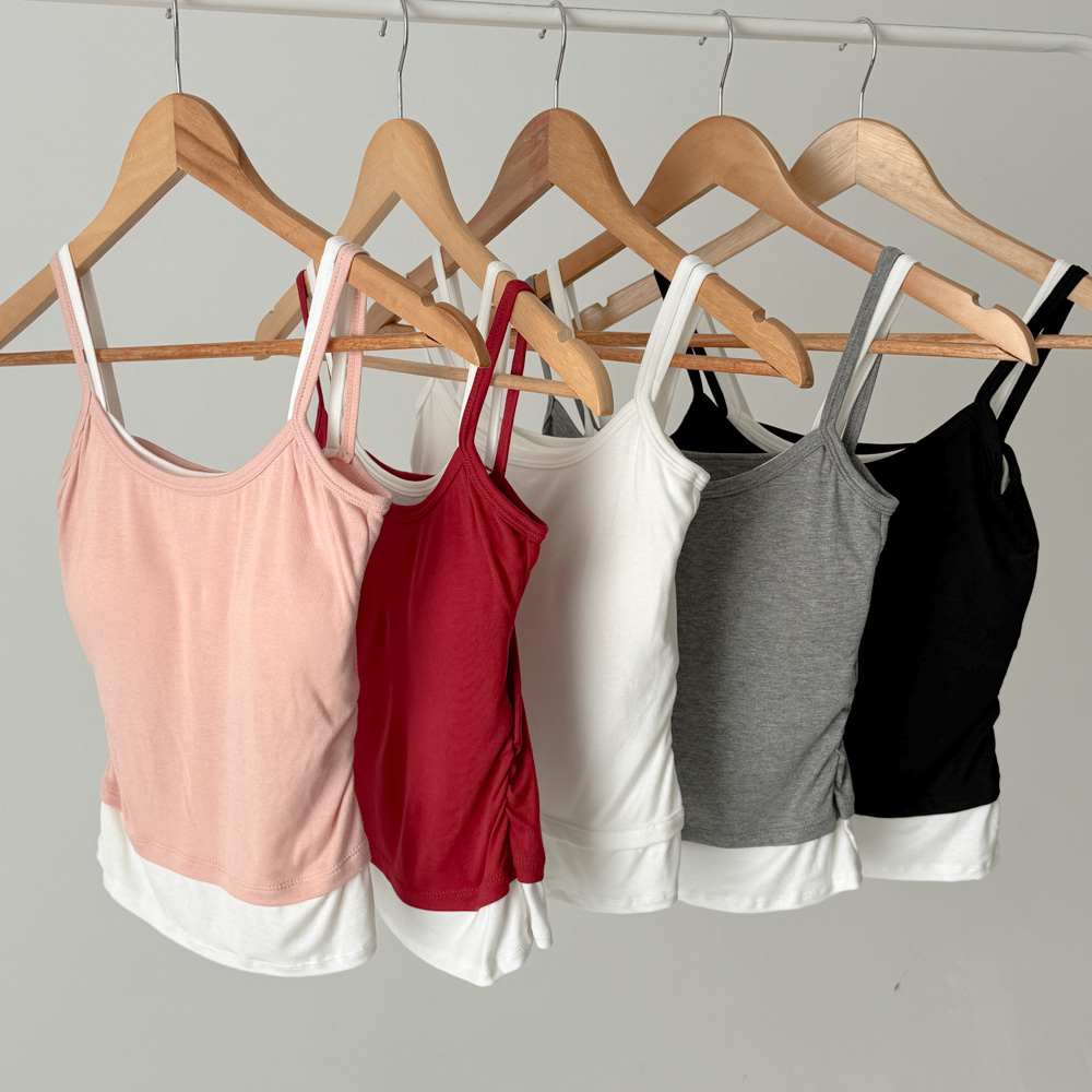 두겹 레이어 셔링 브라렛 캡내장 끈 나시 5color