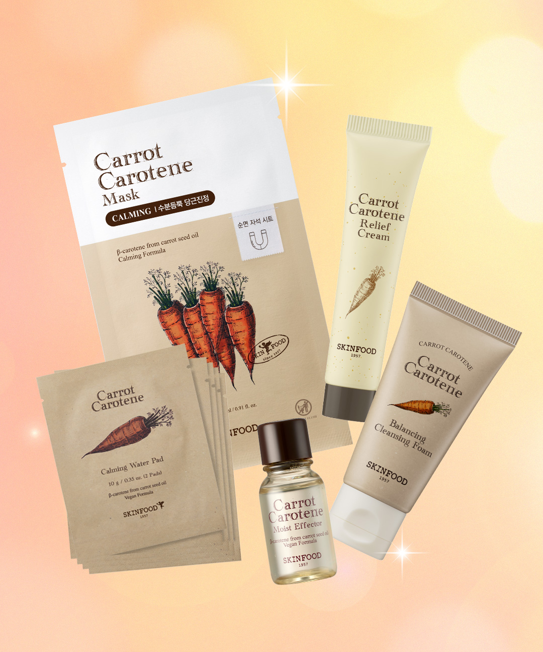 화장품법에 따라 기재, 표시하여야 하는 모든 성분[캐롯카로틴밸런싱클렌징폼] 정제수, 글리세린, 소듐코코일이세티오네이트, 포타슘코코일글리시네이트, 하이드록시프로필스타치포스페이트, 1,2-헥산다이올, 부틸렌글라이콜, 포타슘코코에이트, 폴리쿼터늄-67, 당근가루, 당근추출물, 광곽향오일, 에틸헥실글리세린, 베르가모트오일, 다이소듐이디티에이, 로즈마리잎오일, 센티드제라늄꽃오일, 유칼립투스잎오일, 알란토인, 시트릭애씨드, 당근씨오일, 스쿠알란, 소듐하이알루로네이트, 하이드록시프로필트라이모늄하이알루로네이트, 하이드롤라이즈드하이알루로닉애씨드, 소듐아세틸레이티드하이알루로네이트, 하이알루로닉애씨드, 하이드롤라이즈드소듐하이알루로네이트, 소듐하이알루로네이트크로스폴리머, 포타슘하이알루로네이트 [캐롯카로틴마스크] 정제수, 글리세린, 프로판다이올, 부틸렌글라이콜, 다이프로필렌글라이콜, 메틸프로판다이올, 1,2-헥산다이올, 하이드록시아세토페논, 폴리글리세릴-10라우레이트, 다이에톡시에틸석시네이트, 카보머, 베타인, 트로메타민, 판테놀, 하이드록시에틸우레아, 알란토인, 하이드록시에틸셀룰로오스, 다이포타슘글리시리제이트, 잔탄검, 당근추출물(200 ppm), 에틸헥실글리세린, 다이페닐다이메티콘, 트라이에틸헥사노인, 글리세릴아크릴레이트/아크릴릭애씨드코폴리머, 소듐하이알루로네이트, 폴리글리세릴-10올리에이트, 하이드로제네이티드레시틴, 당근씨오일(20 ppm, 베타-카로틴 0.3 ng), 올리브오일, 광곽향오일, 베타-글루칸, 라반딘오일, 살비아오일, 불가리스쑥오일, 오렌지껍질오일, 녹차추출물, 병풀추출물, 미역추출물, 여주열매추출물, 브로콜리추출물, 양배추추출물, 카프릴릴글라이콜 [캐롯카로틴카밍워터패드] 정제수, 글리세린, 부틸렌글라이콜, 1,2-헥산다이올, C12-14파레스-12, 에틸헥실글리세린, 소듐시트레이트, 당근추출물(735 ppm), 소듐파이테이트, 소듐하이알루로네이트, 시트릭애씨드, 하이드록시에틸셀룰로오스, 베타-글루칸, 알란토인, 사카라이드하이드롤리세이트, 말토덱스트린, 당근씨오일(10,000 ppb, 베타-카로틴 1.5 ng), 올리브오일, 광곽향오일, 살비아오일, 라반딘오일, 불가리스쑥오일, 오렌지껍질오일, 미역추출물, 카프릴릴글라이콜 [캐롯카로틴모이스트이펙터] 정제수, 글리세린, 프로판다이올, 메틸프로판다이올, 다이프로필렌글라이콜, 1,2-헥산다이올, 부틸렌글라이콜, 다이에톡시에틸석시네이트, 피피지-13-데실테트라데세스-24, 당근추출물 (3,700 ppm), 베타인, 에틸헥실글리세린, 판테놀, 소듐카보머, 아크릴레이트/C10-30알킬아크릴레이트크로스폴리머, 알란토인, 카보머, 소듐하이알루로네이트, 글리세릴아크릴레이트/아크릴릭애씨드코폴리머, 당근씨오일 (200 ppm, 베타-카로틴 6.2 ng), 소듐파이테이트, 말토덱스트린, 베타-글루칸, 사카라이드하이드롤리세이트, 올리브오일, 광곽향오일, 시어버터, 옥틸도데칸올, 하이드로제네이티드레시틴, 라반딘오일, 살비아오일, 불가리스쑥오일, 오렌지껍질오일, 잔탄검, 글리세릴시트레이트/락테이트/리놀리에이트/올리에이트, 미역추출물, 하이드록시에틸아크릴레이트/소듐아크릴로일다이메틸타우레이트코폴리머, 글리세릴올리에이트, 글라이코리피드, 글라이코스핑고리피드, 토코페롤, 세라마이드엔피, 카프릴릴글라이콜 [캐롯카로틴수딩토너] 정제수, 글리세린, 부틸렌글라이콜, 1,2-헥산다이올, 피피지-13-데실테트라데세스-24, 에틸헥실글리세린, 소듐시트레이트, 당근추출물(882 ppm), 소듐하이알루로네이트, 시트릭애씨드, 소듐파이테이트, 베타-글루칸, 알란토인, 하이드록시에틸셀룰로오스, 말토덱스트린, 사카라이드하이드롤리세이트, 당근씨오일(10,000 ppb, 베타-카로틴 1.8 ng), 녹차추출물, 병풀추출물, 올리브오일, 광곽향오일, 여주열매추출물, 라반딘오일, 브로콜리추출물, 살비아오일, 양배추추출물, 불가리스쑥오일, 오렌지껍질오일, 미역추출물, 카프릴릴글라이콜