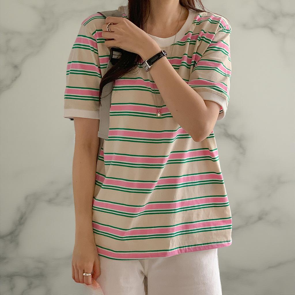 여자 컬러웨이 반팔 링거라운드 티셔츠