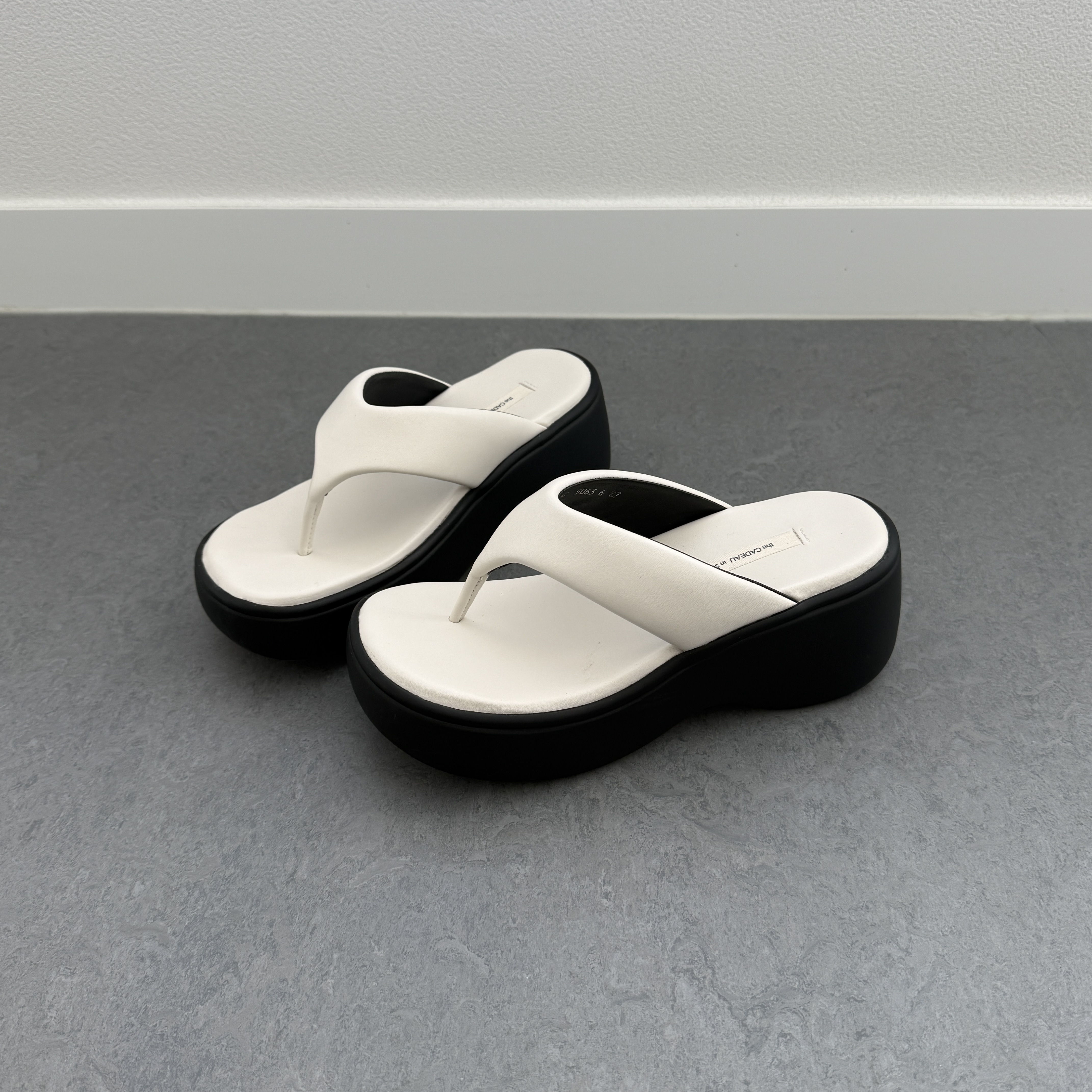 라운드 엠보 통굽 쪼리 샌들 (6cm/4color)