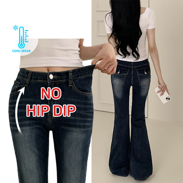 [기장선택!/여름데님] 모히팅 백포켓 쿨 하이웨스트 빈티지워싱 슬림핏 여름 스판 부츠컷 데님 팬츠 (3color)