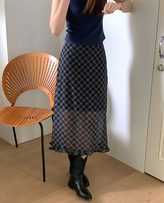 [장마룩][썸머🍉] 프룬 체크 시스루 롱 (sk)