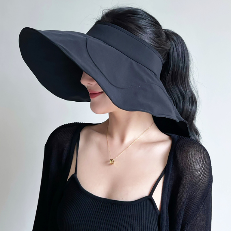 여성 웨이브 롱 플랩 썬캡 모자 자외선차단 여름 해변 휴가 썬햇 뒷목