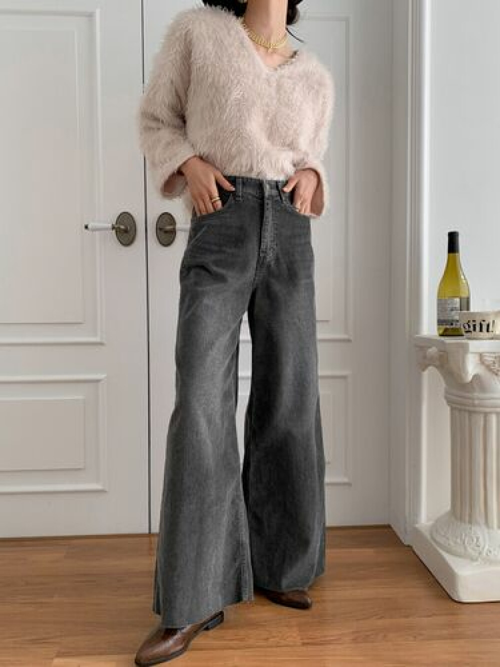 [에르디테] 여성 골덴 피그먼트 와이드 부츠컷 데님 팬츠 2컬러