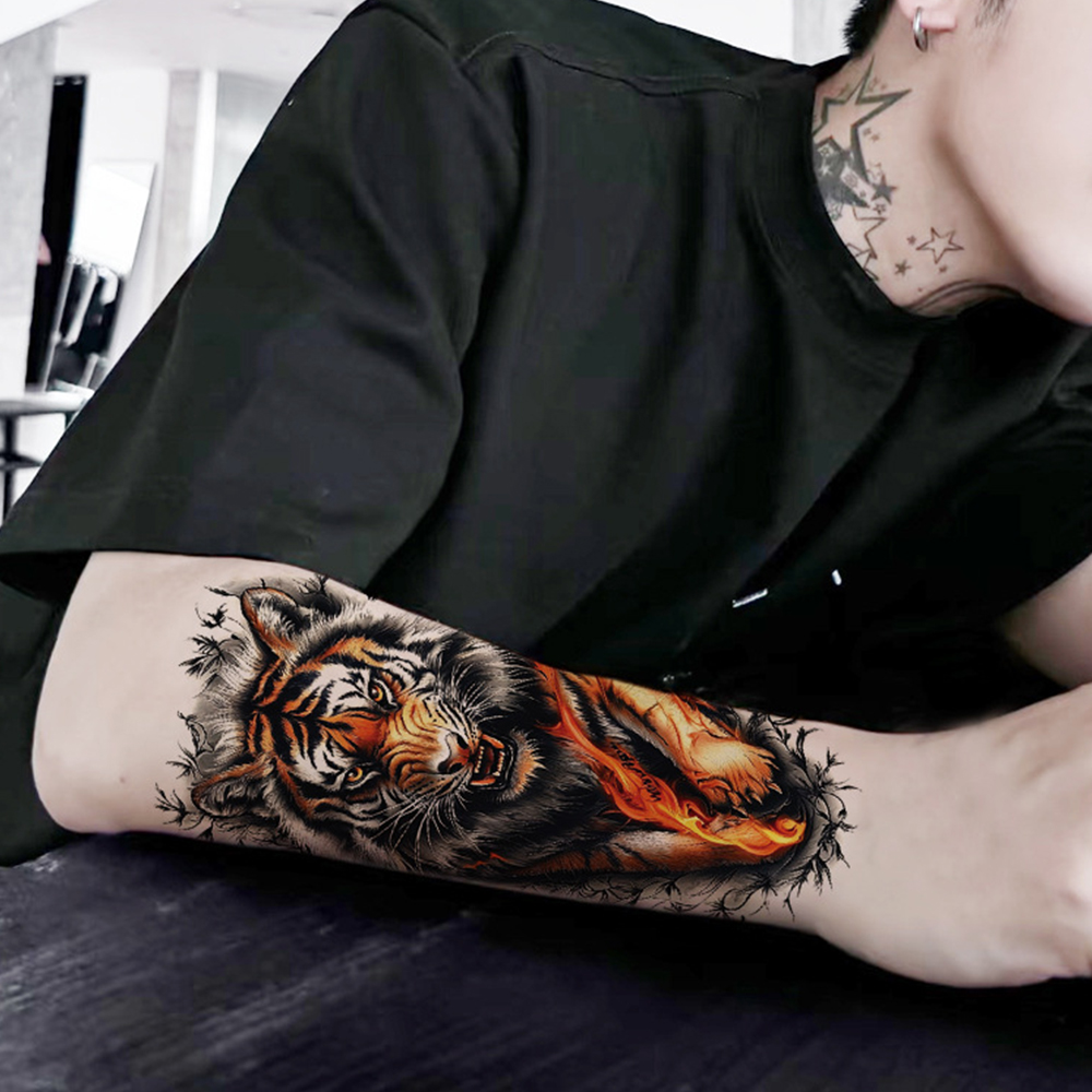 젤루나 리얼한 맹수 호랑이 남자 팔 헤나 문신 타투 스티커