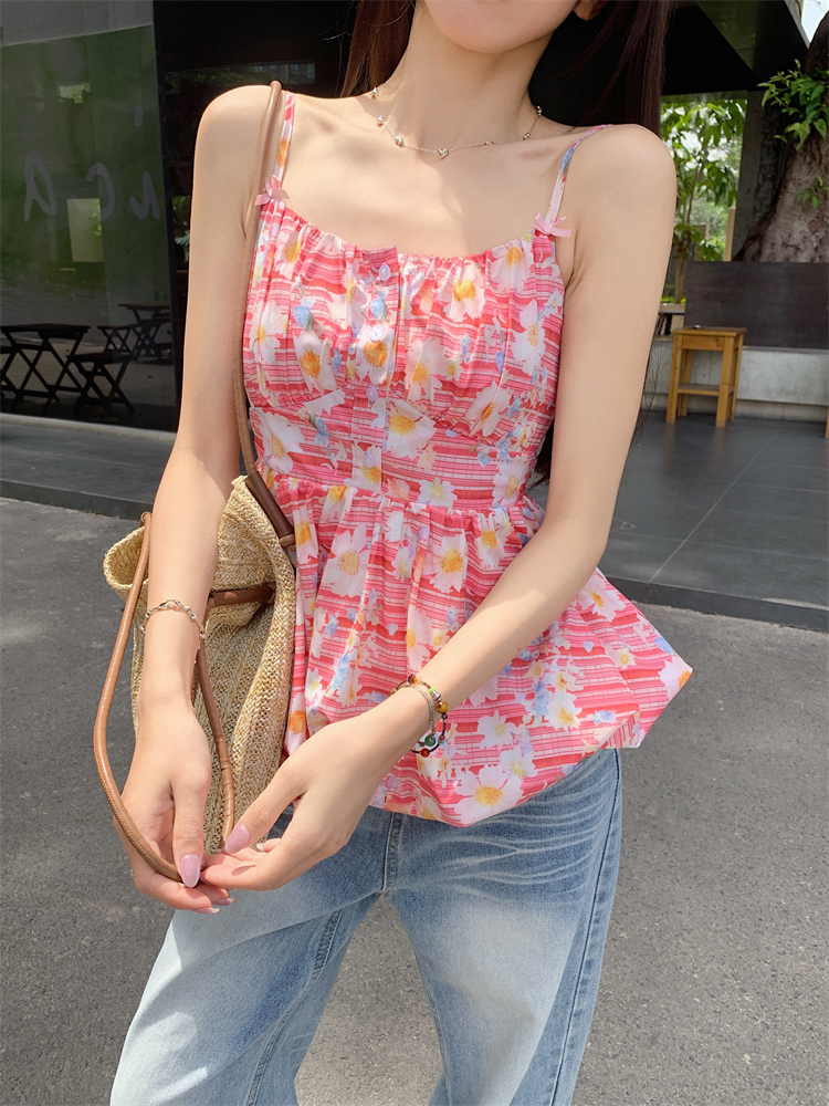 오일 페인팅 보우 에이라인 슬리브리스 탑 나시 티셔츠 라라비에르FK988