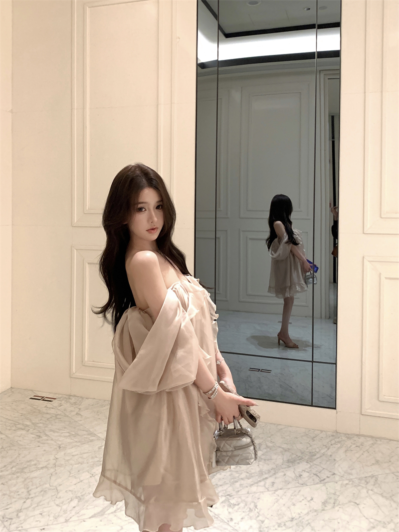 프릴 브이넥 시폰 튜브탑 원피스 미니 원피스 미니원피스 루루홀릭LU1210