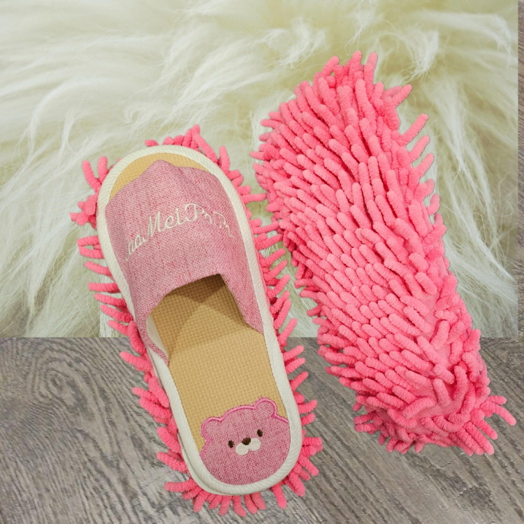 좋은 품질핑크 극세사분리형 린넨 곰돌이 청소걸레 실내화 층간소음 슬리퍼