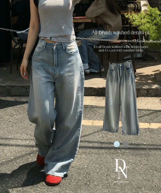 [당일배송/여름원단] 올브러쉬 워싱 와이드 마 데님 팬츠