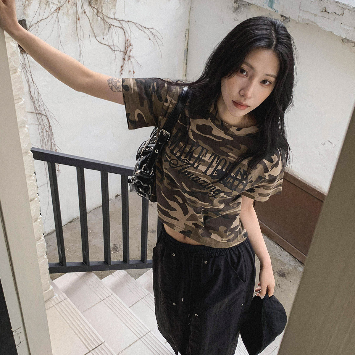 [크롭카모] 카모플라쥬 크롭 반팔티