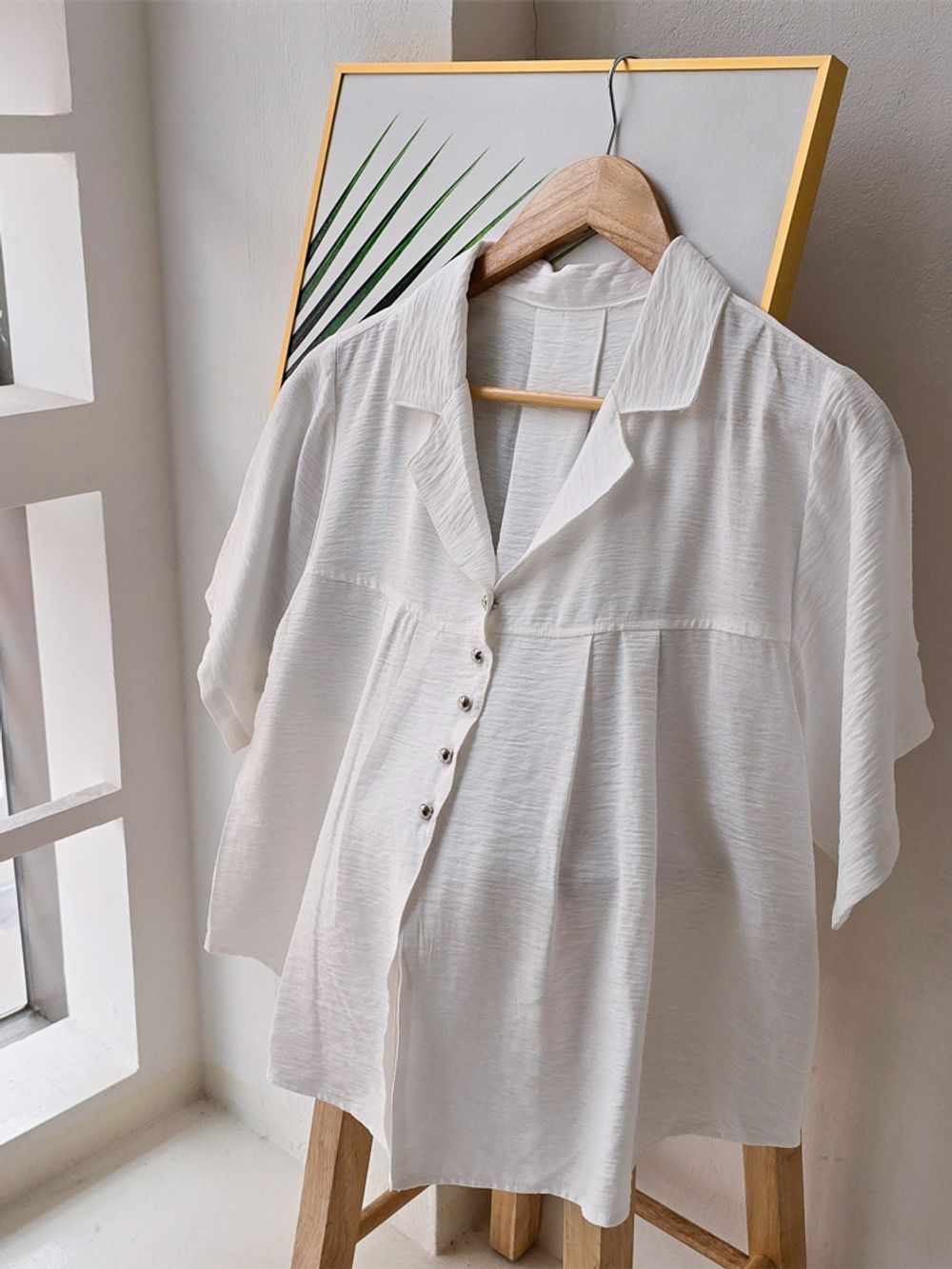 [55-88/플러스사이즈] 카라 콩단추 핀턱 시어서커 쿨링 오픈 블라우스