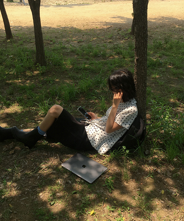 [MADE] 로윈 시어서커 도트 퍼프 반팔 블라우스
