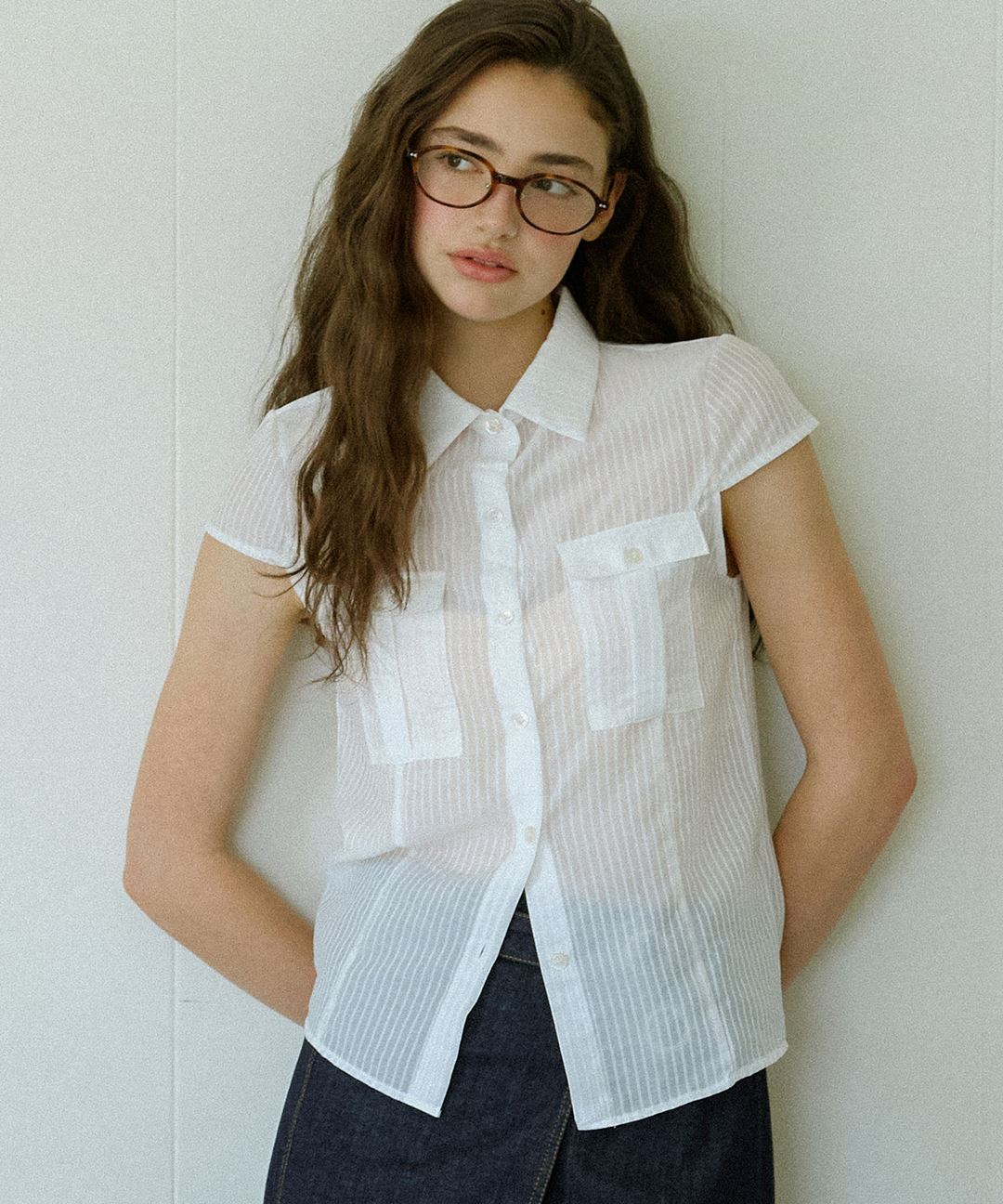 [S/M SIZE] 스트라이프 시스루 슬림 셔츠 ( 2 colors )