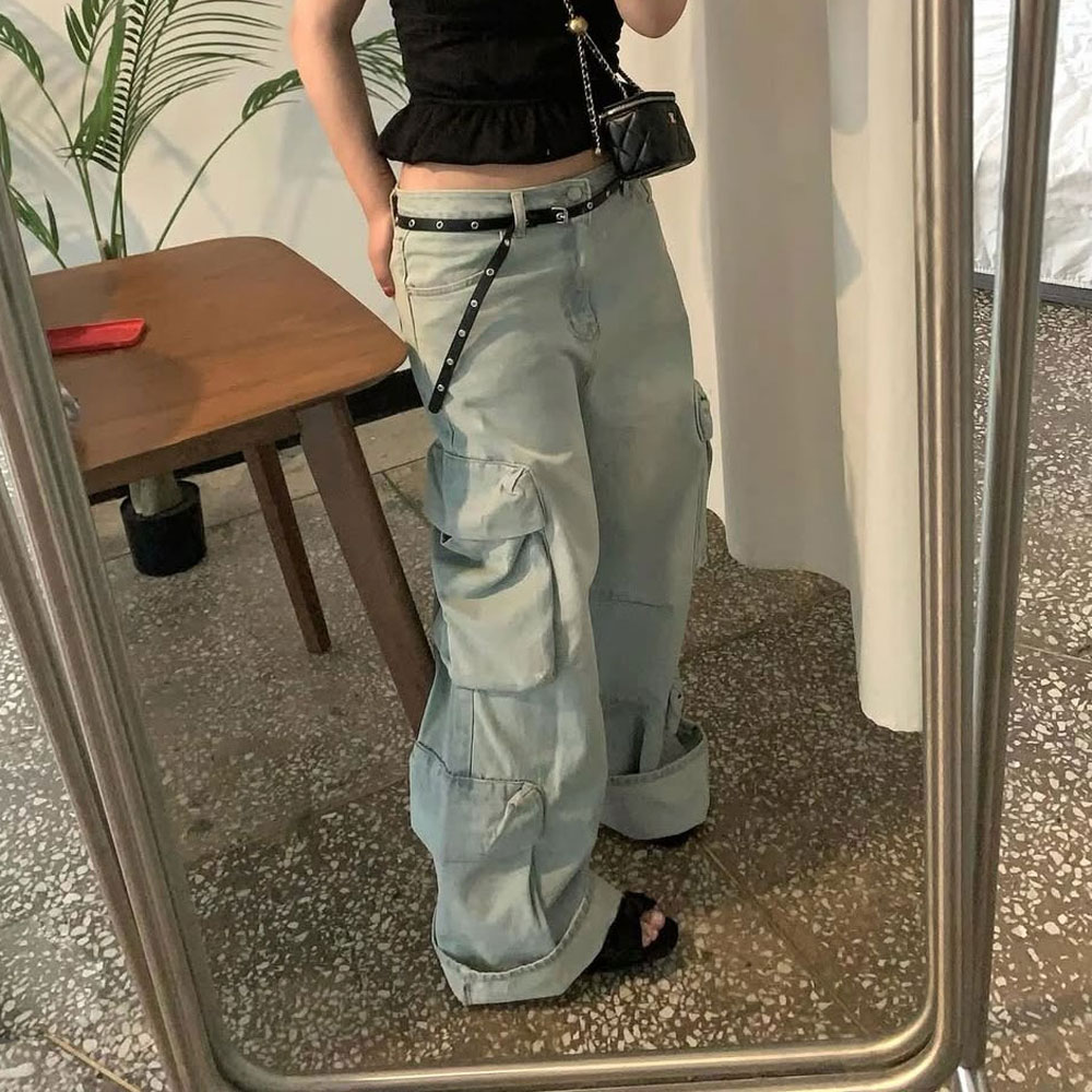 [무료배송] 서로 아이스 더블 포켓 와이드 데님 팬츠