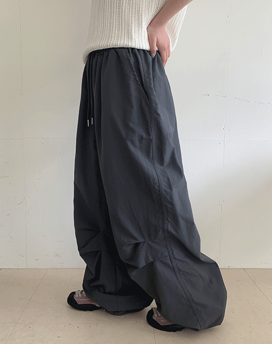 [unisex] 아몬 나일론 파라슈트 밴딩 와이드 팬츠 (5color)