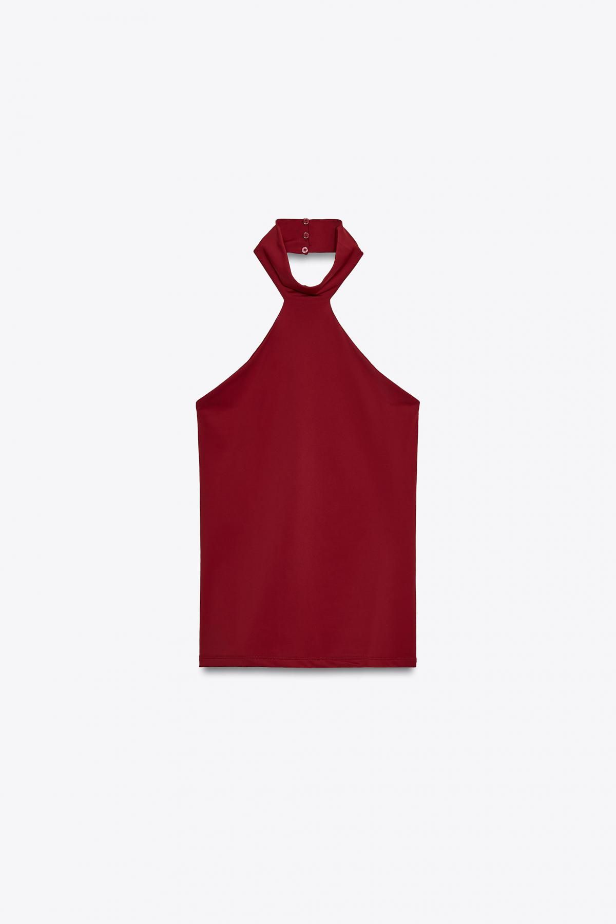 자라 모던 폴리아미드 홀터넥 민소매 탑 3641/153 BURGUNDY