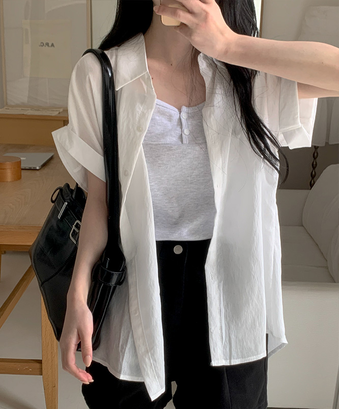 [여름cool셔츠💙] 언유즈얼리 로레스 데일리 반팔셔츠 (4color) 여름셔츠/여름반팔/롤업셔츠/포켓셔츠/루즈핏/오버핏/하객룩/장마템/장마룩