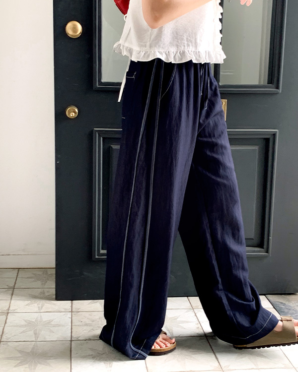 [허리밴딩]누니 배색 라인 와이드 팬츠
