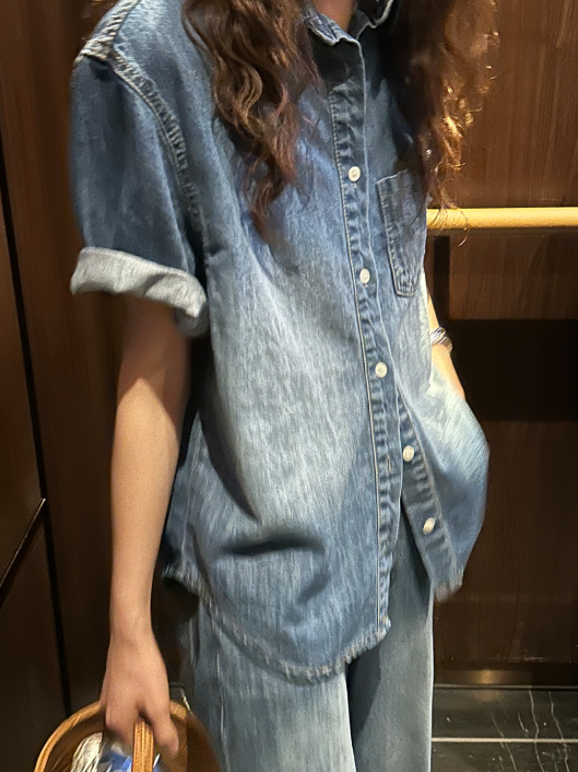[당일/SALE] 108파운드 프롬 데님 반팔 셔츠 여름 중청 롤업 베이직 청청코디 청남방 셋업가능