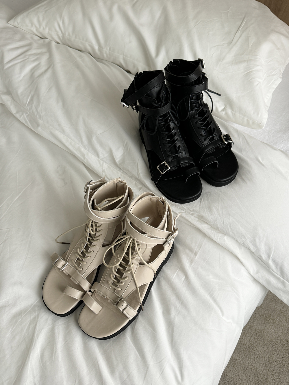 레이스업 스트랩 버클 벨트 글래디에이터 쪼리 여성 단화 샌들