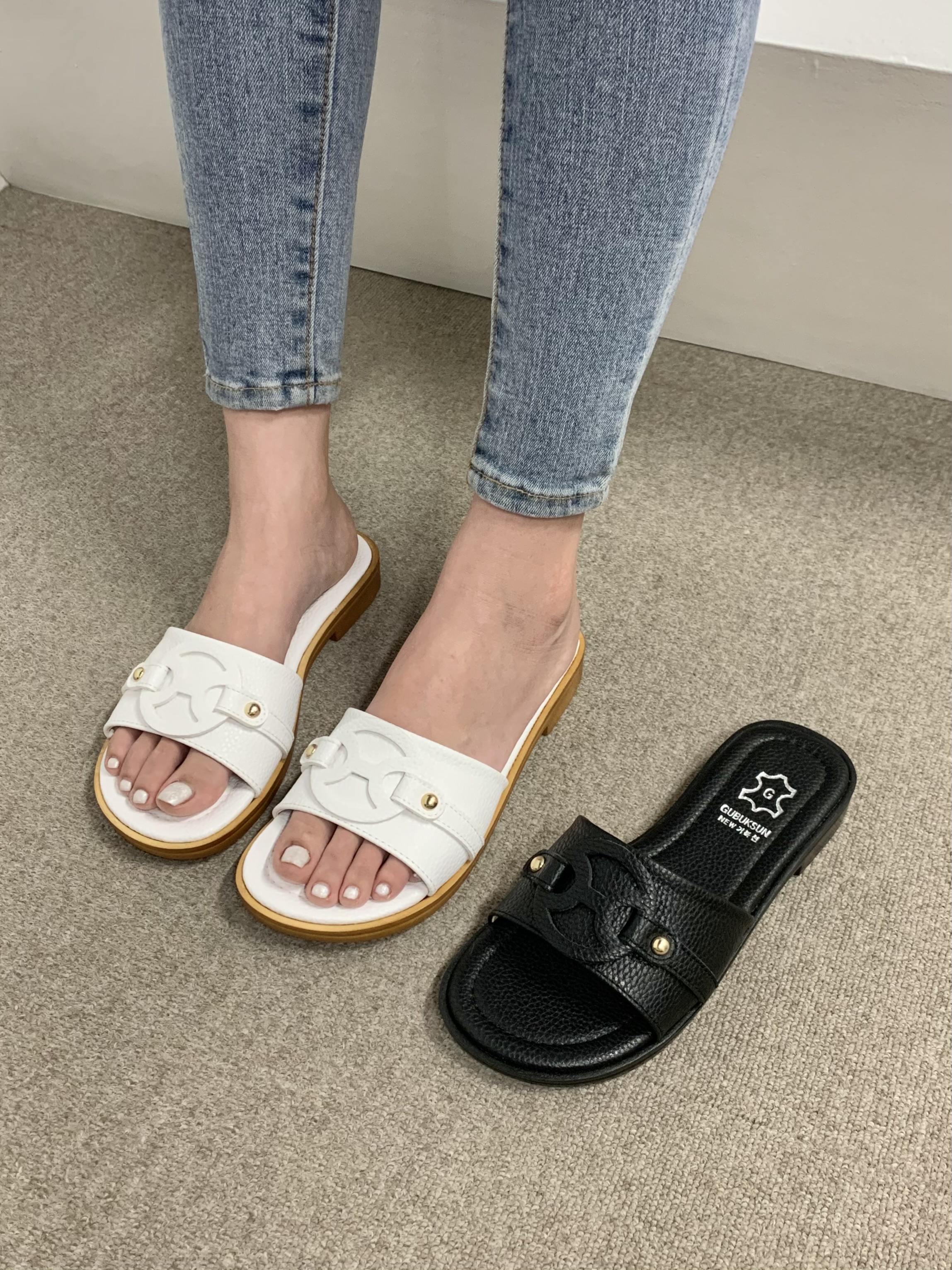 국산✨ 라운드 장식 포인트 플랫 슬리퍼 2cm 2color