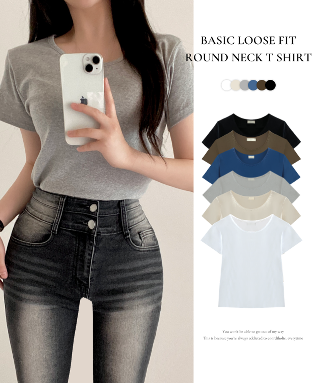 🔥4만장돌파🔥[1+1할인! 인생반팔티!/팔뚝살소멸/여리말라핏보장🤍] 데일리 라운드넥 기본 면 무지 여유핏 루즈 세미크롭 반팔 티셔츠 6color
