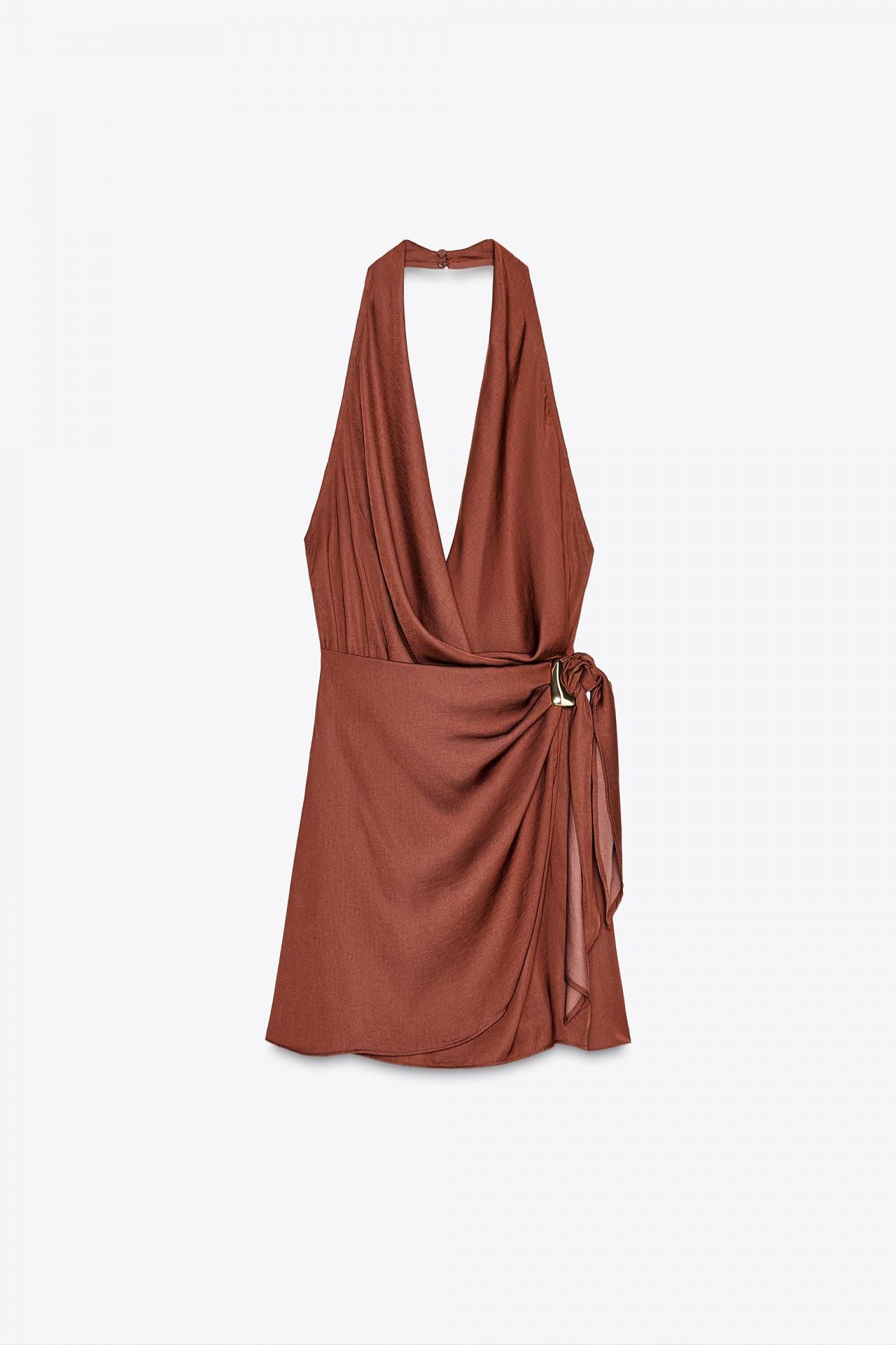 자라 골드 아플리케 홀터 원피스 3897/111 BROWN
