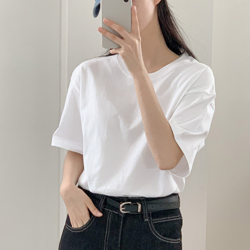 남녀공용 데일리 라운드 기본 반팔 티셔츠 반팔티