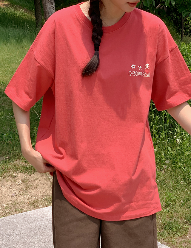 셀레스티 드로잉 나염 루즈핏 롱 반팔 티셔츠 81739