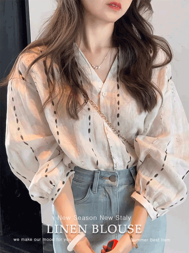 AS-938 린넨 브이넥 루즈핏 블라우스