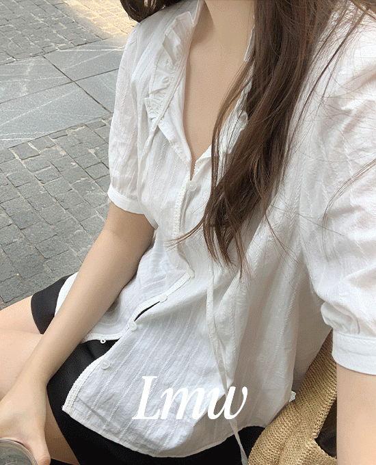 [l.m.w] 썸머 레이스 코튼 프릴 핀턱 블라우스 (bl)