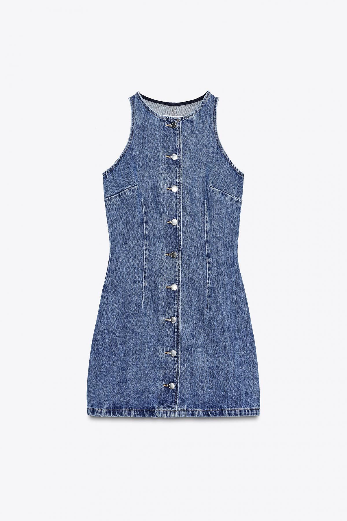 자라 데님 버튼 슬리브리스 미니 원피스 6147/092 MID-BLUE