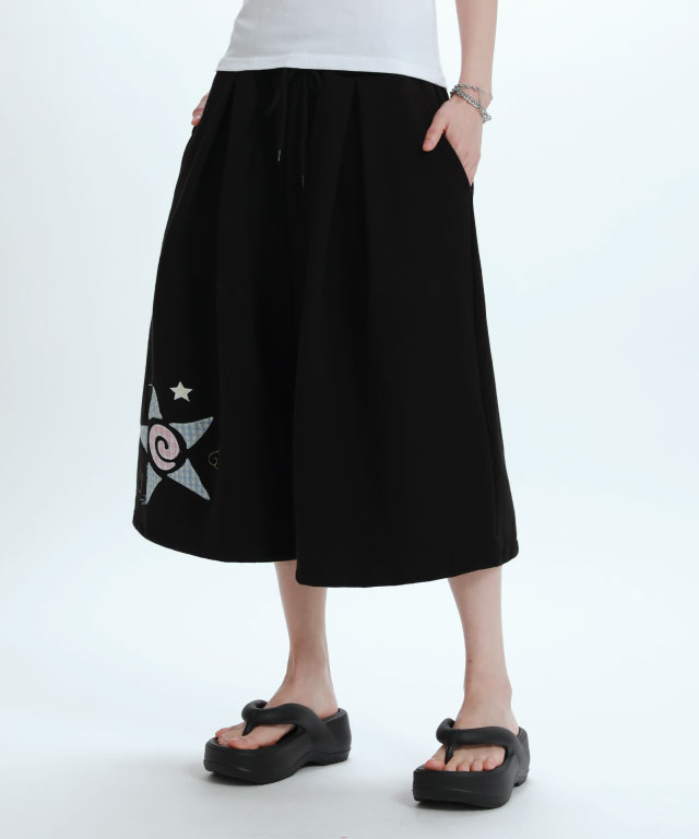 체크 스타 아플리케 버뮤다 팬츠[블랙]