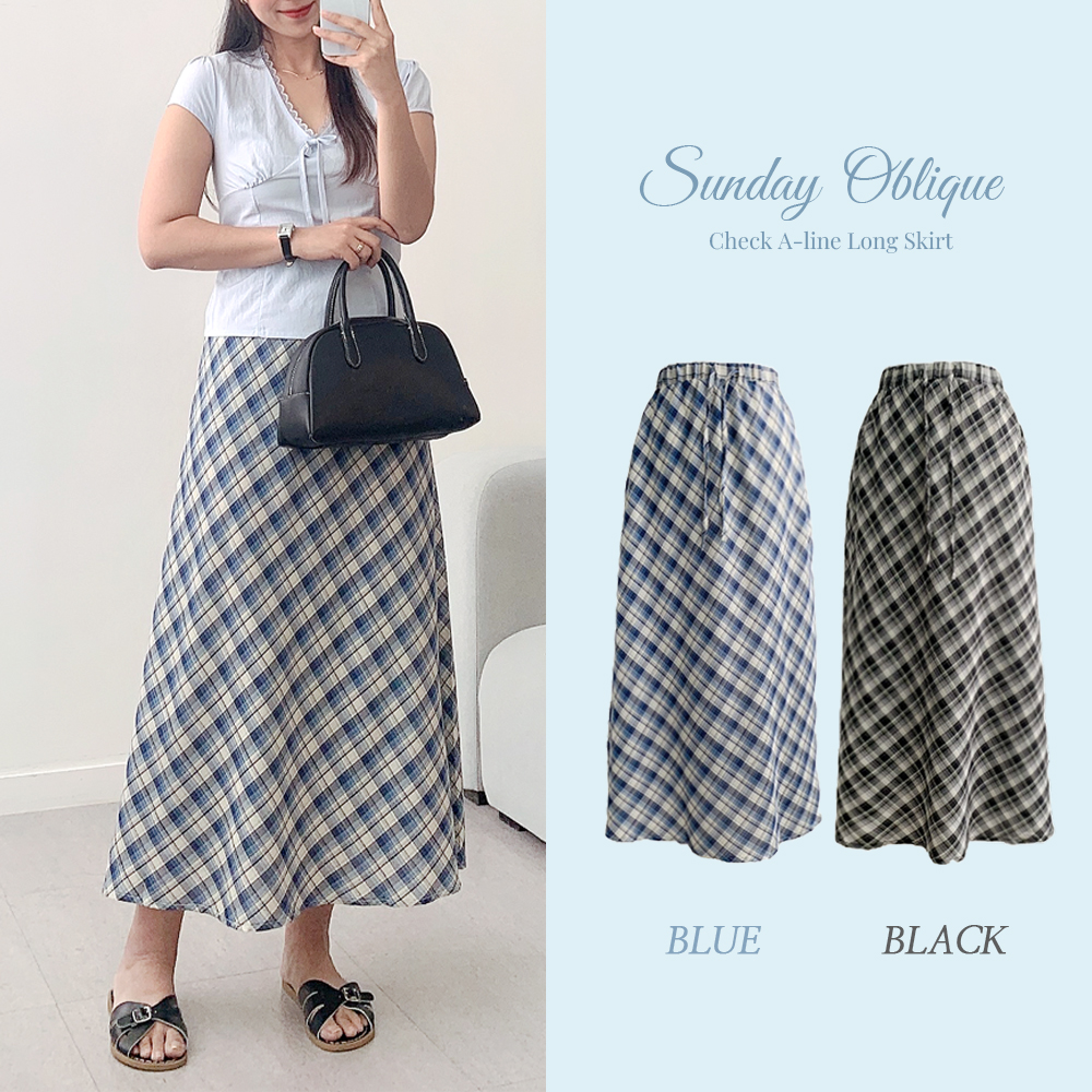 선데이 밴딩 사선 체크 A라인 롱 스커트 A0546