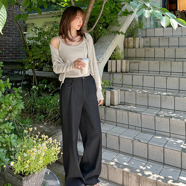[제작/빅사이즈]이블렛 페비넨 블랙 와이드 밴딩 데님팬츠 제이스타일