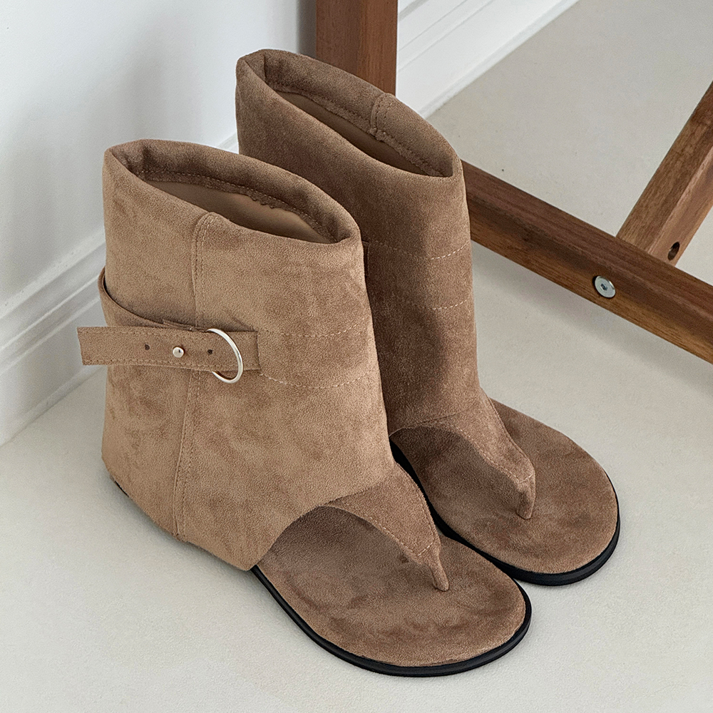 [🤍여름코디템/속굽⭕] 폭신 스웨이드 버클 레이어드 쪼리부츠(4.5cm)-6291