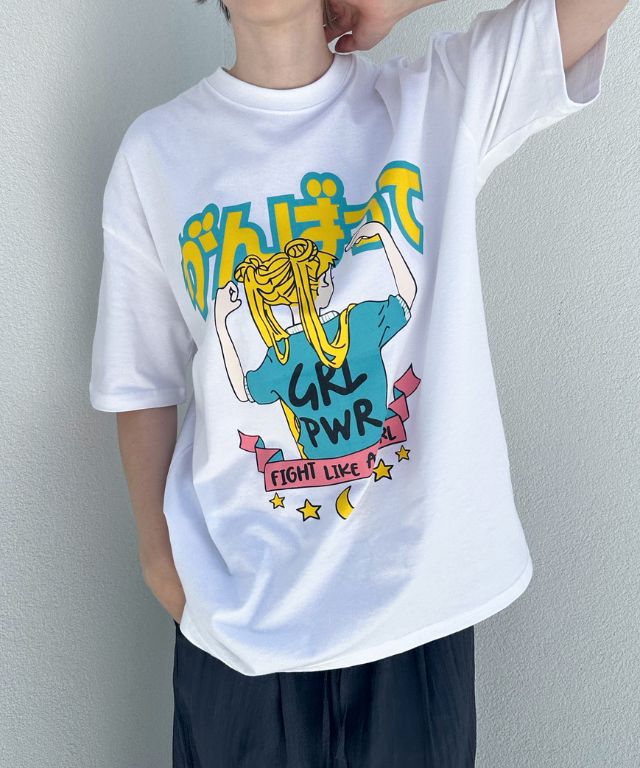 간바떼 걸파워 오버사이즈 프린팅 반팔 티셔츠