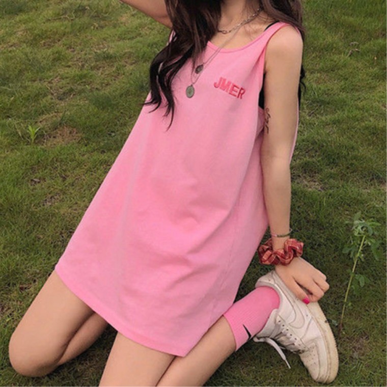 박스티 롱티 일상 코디 룩 루즈핏 민소매 오버핏 나시 롱 티셔츠
