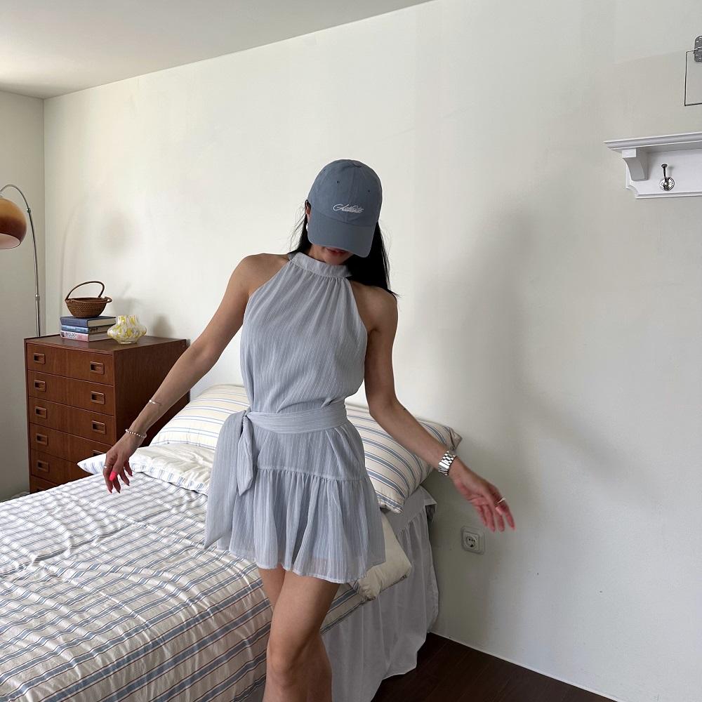 홀터넥 쉬폰 미니 원피스 SKYBULE COLOR