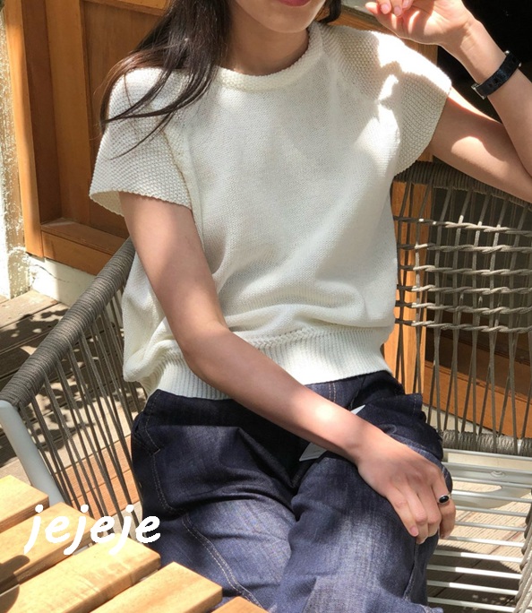 여자 여름 캡소매 반팔 디엠버 보넷 가네꼬 니트 2color