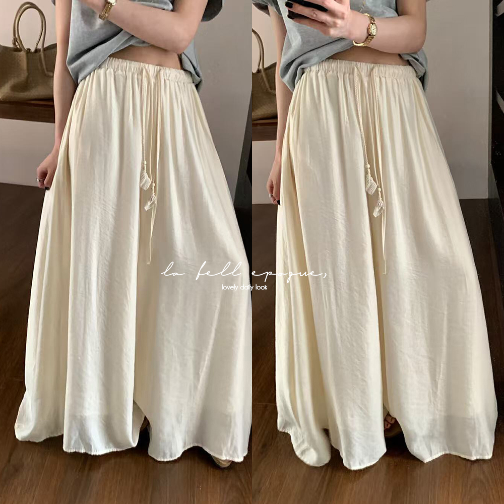 어바웃 여름 하이웨스트 실키 태슬 와이드 밴딩 팬츠