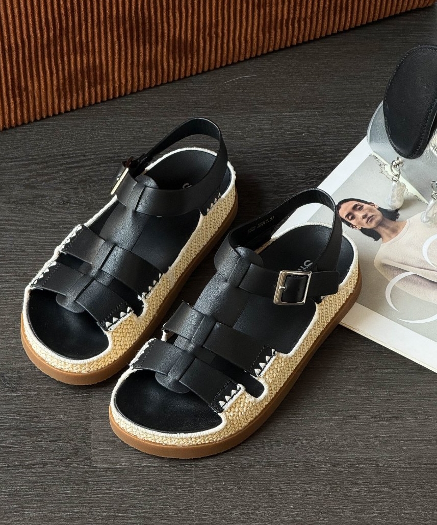 에센셜 리조트 소가죽 샌들 3cm 멀티스트랩 플랫폼 에스파듀 t스트랩 여름샌들