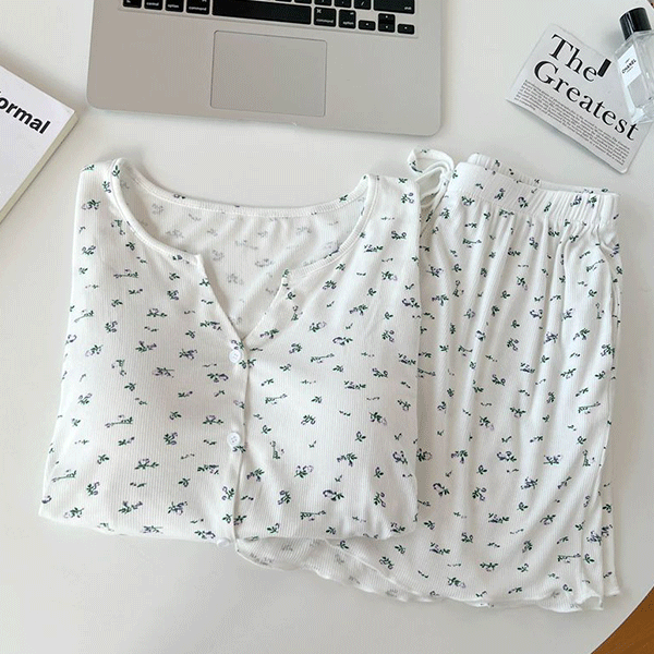 [⏰오늘만! 만원딜+당일배송] 플로럴 브이넥 여름 반팔 잠옷 세트
